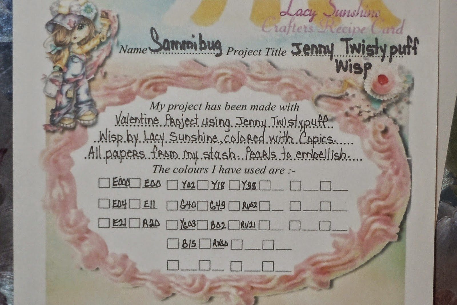 I've used the Image, Jenny Twistypuff Wisp, from Lacy Sunshine Stamps. My card layout uses the sketch at Digi Sketch and Stamp